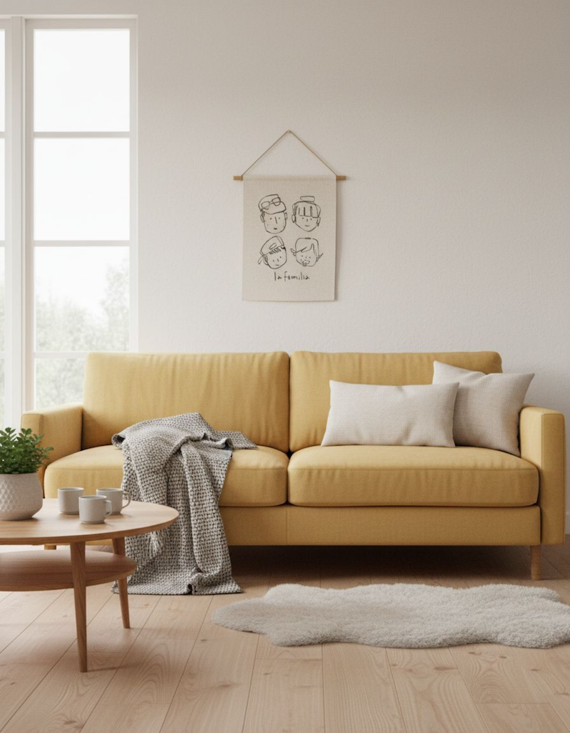 En esta colaboración con nuestra amiga y talentosa dibujante María de La Sencilla, hemos creado un Tapiz decorativo de pared confeccionado a mano en loneta de 100% algodón orgánico GOTS, y diseño personalizado estampado en transfer. Utilizamos una varilla de madera natural y cordel 100% algodón encerado, para colgar fácilmente en cualquier rincón de tu casa. Un regalo original, único y pensado con dedicación y amor para retratar a tu familia, a tu niño o niña, o a quien quieras!. Sigue más abajo las instrucciones para poder encargar el tuyo, o el que desees regalar.